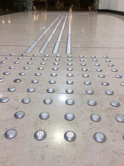 כפתורי גבשושיות מנירוסטה הם אלמנטים חשובים בתחום הנגישות והבטיחות המשמשים לסימון והכוונה עבור אנשים עם מוגבלות ראייה. כפתורים אלו משובצים בדרך כלל בכניסה למעליות, תחנות תחבורה ציבורית ומעברים ציבוריים, כדי לסייע בזיהוי שינויים במרחב כמו קצוות מדרכות או תחילת גרמי מדרגות. יתרונם הגדול של כפתורים מנירוסטה הוא עמידותם הגבוהה לתנאי מזג אוויר קיצוניים, חלודה ושחיקה לאורך זמן. בנוסף, המראה האסתטי של הנירוסטה משתלב היטב במגוון עיצובים אורבניים מודרניים ועל ידי כך הכפתורים הללו לא רק משפרים את בטיחות המרחב הציבורי, אלא גם תורמים לעיצובו המודרני והנקי. הכפתורים מותקנים הן בחללים פנימיים והן חיצוניים על גבי משטחים כגון בטון, שיש, גרנוליט ועוד, תוך שימוש בדבק ייחודי. במשטח בגודל תקני של 1.60/0.6 מותקנים כ-200 כפתורים.